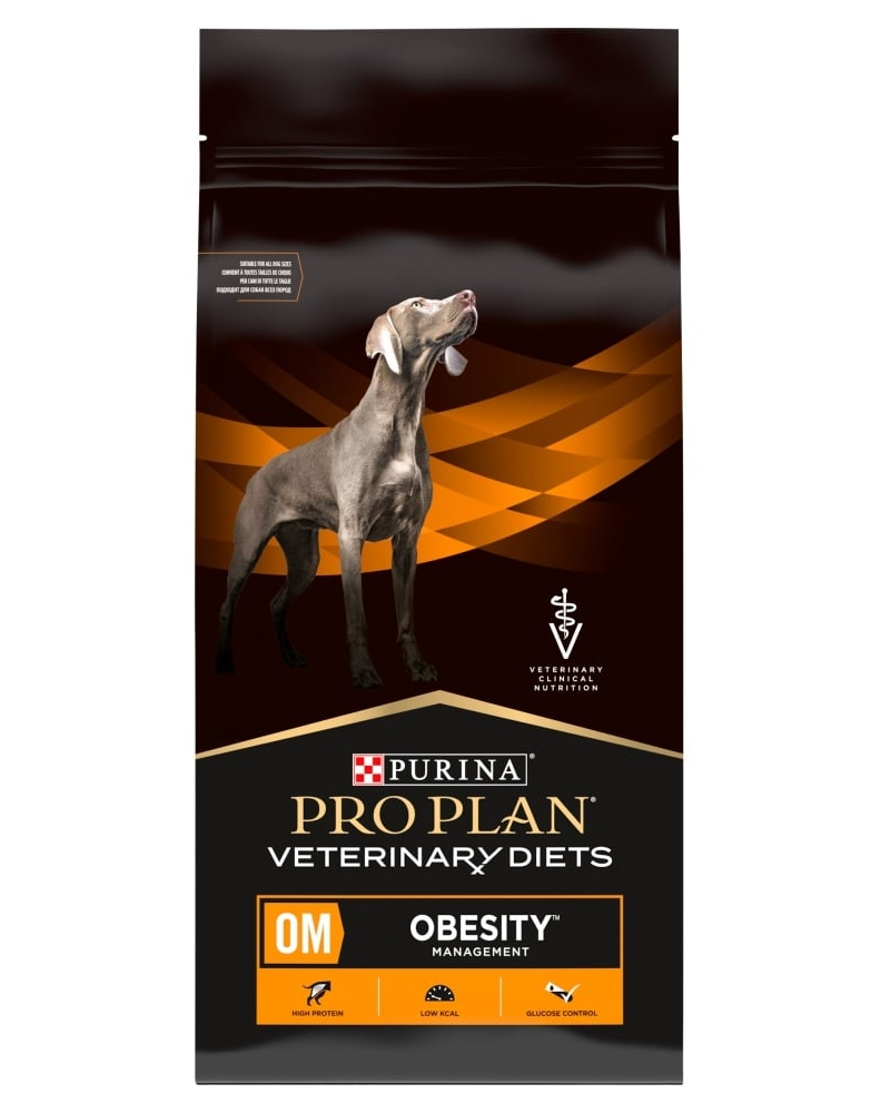 PURINA PRO PLAN Veterinary Diets Canine OM Obesity Management este o dietă veterinară specializată pentru câini adulți, formulată pentru reducerea excesului de greutate corporală și pentru stabilizarea nivelului glicemiei la câinii cu diabet. Hrana are o valoare energetică redusă și un conținut scăzut de zaharuri ușor digerabile, sprijinind pierderea controlată a grăsimii corporale, cu menținerea masei musculare.