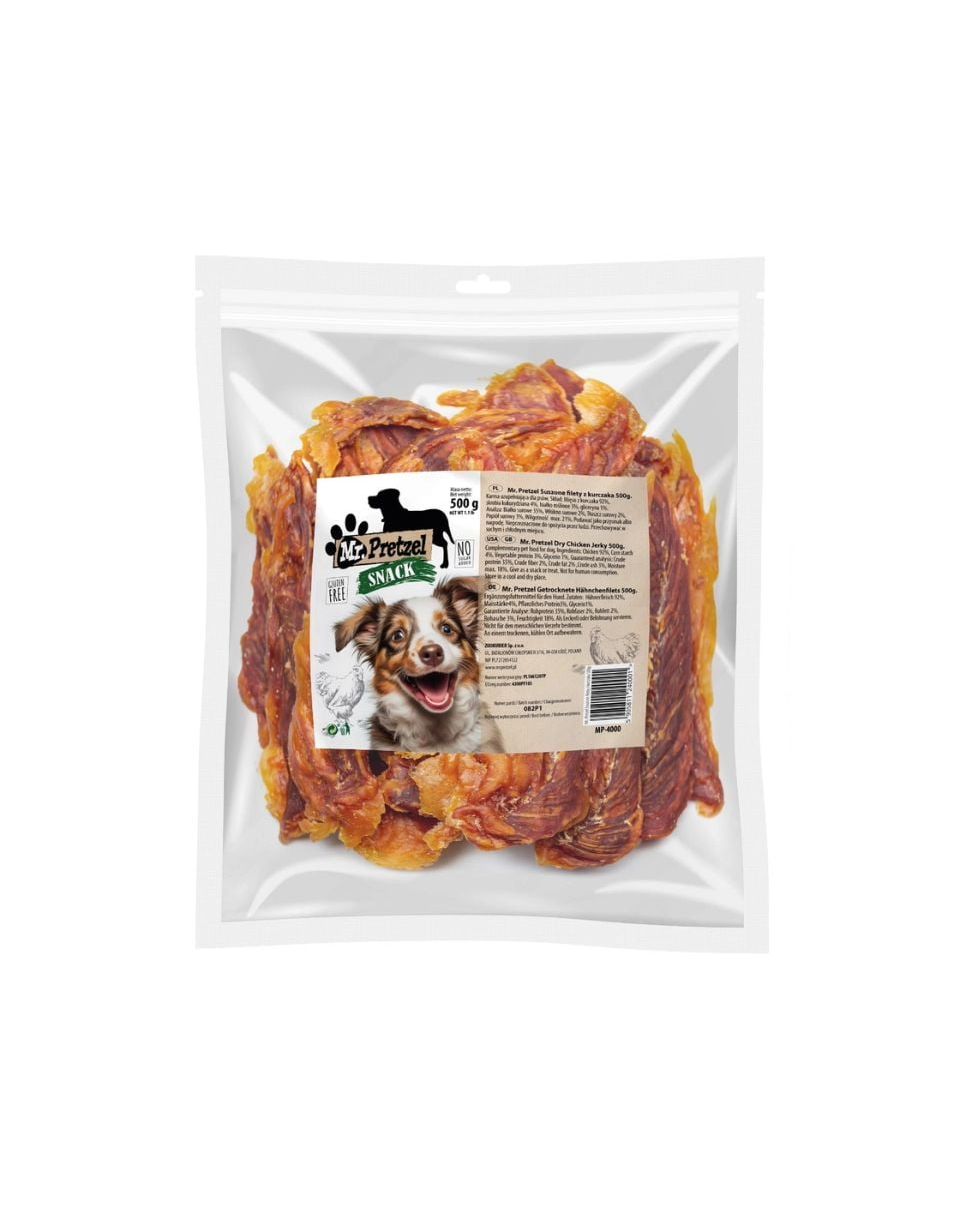 Aceste gustări oferă un aport ridicat de proteină, contribuind la menținerea masei musculare și la susținerea energiei zilnice. Datorită texturii de fâșii, produsul este potrivit atât ca răsfăț între mese, cât și ca recompensă ocazională, mai ales pentru câinii care nu răspund la snacks-uri mici.