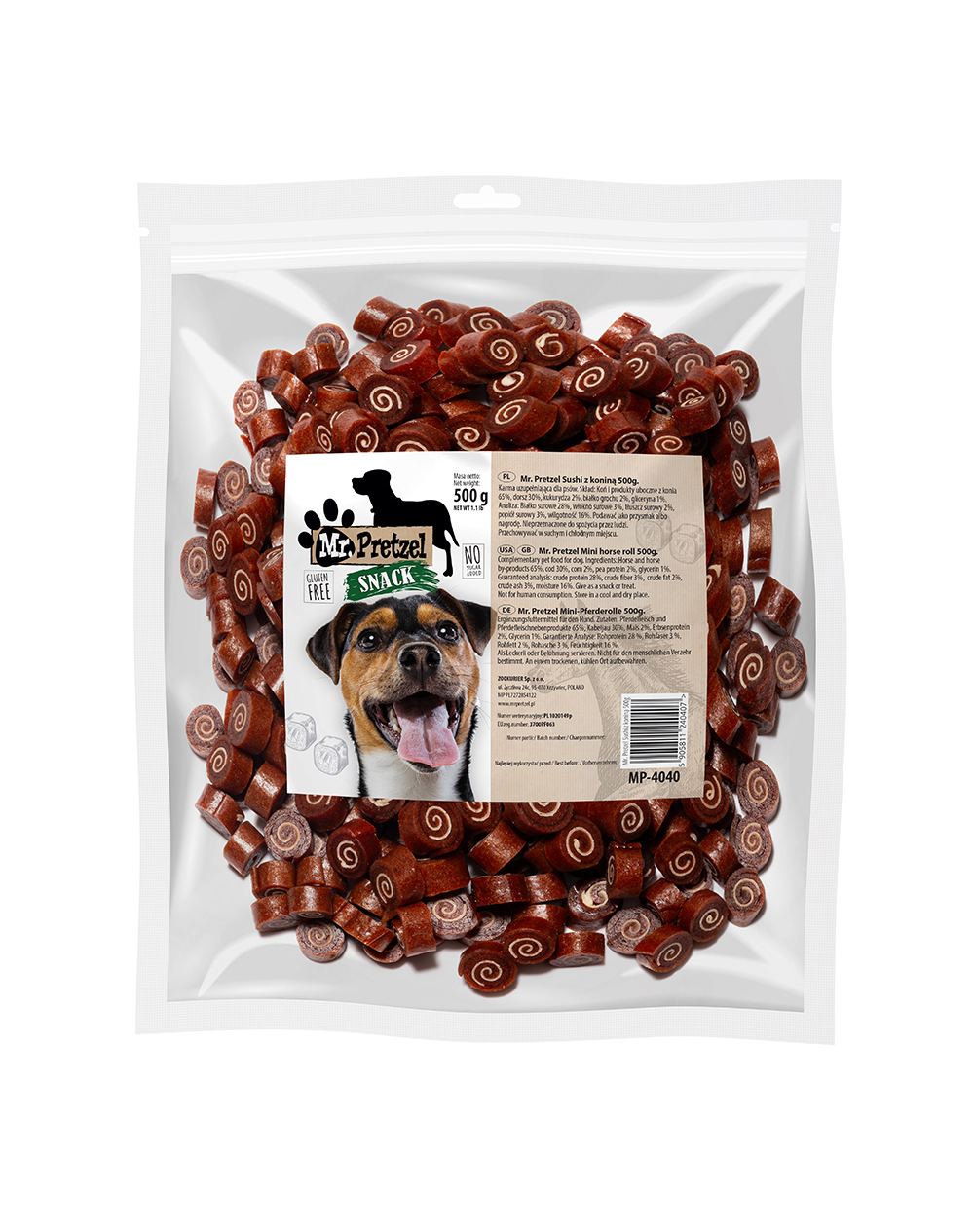 Rețeta conține 65% carne de cal și 30% cod, oferind un profil proteic diferit față de recompensele clasice. Carnea de cal este mai rar întâlnită în alimentația câinilor, ceea ce o face o alegere utilă pentru rotația proteinelor.