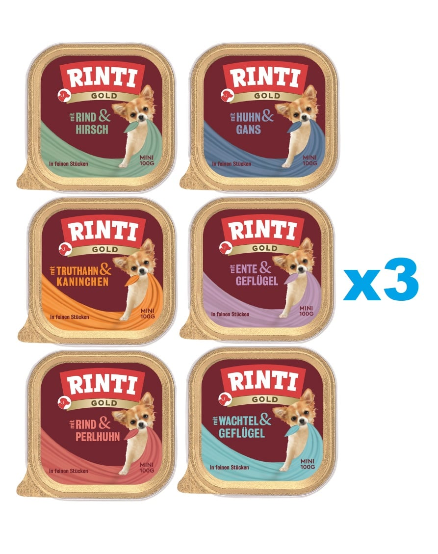 RINTI Gold Mini Set arome mixte pentru câini de rasă mică 18x100 g tăvi conține: