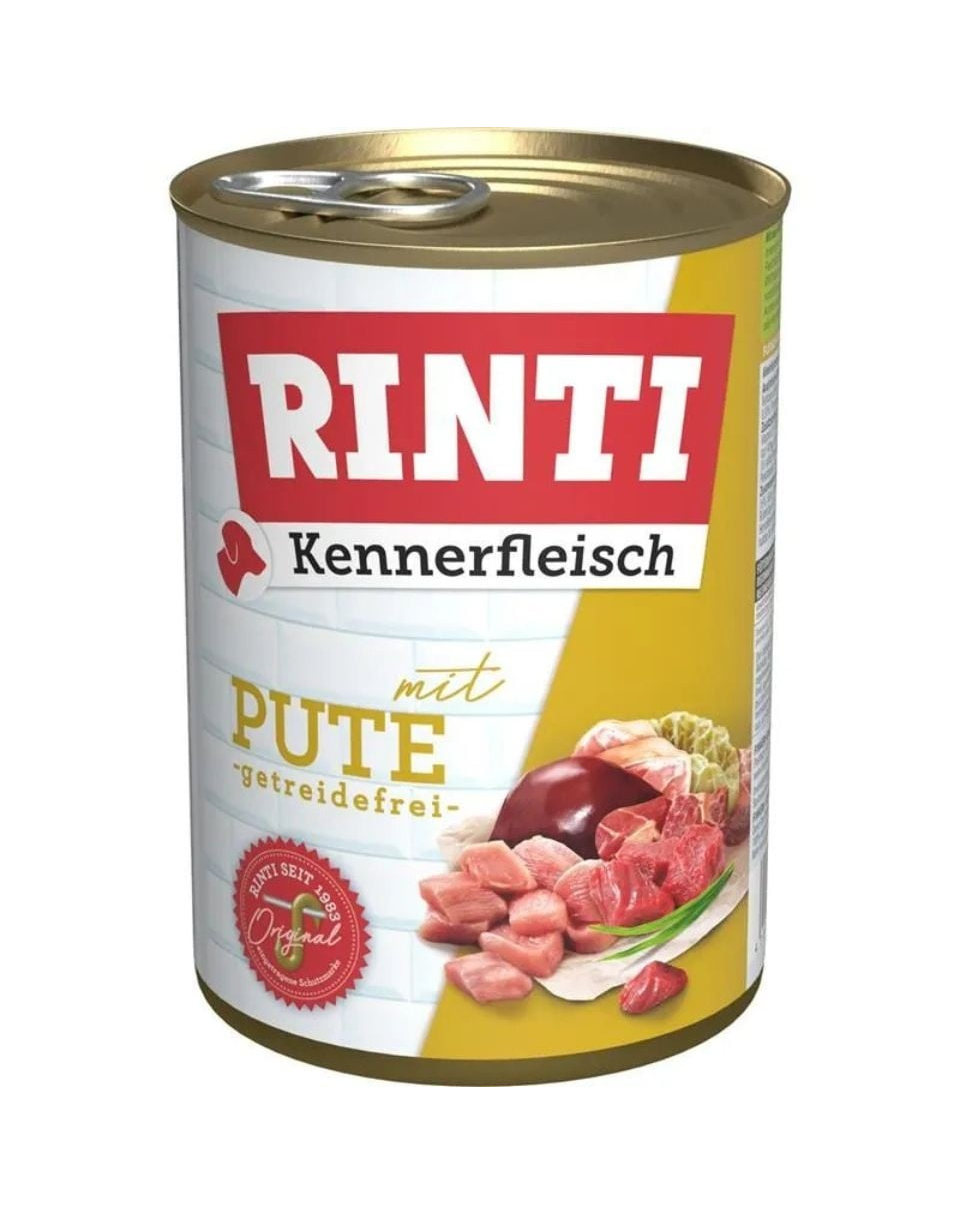 Hrană umedă completă cu conținut ridicat de carne. RINTI Kennerfleisch Turkey este o hrană umedă completă pentru câini adulți, caracterizată printr-un conținut foarte ridicat de carne și organe – 70% ingrediente de origine animală, prezentate sub formă de bucăți naturale, bine vizibile. Aceste bucăți de carne sunt elementul distinctiv al gamei Kennerfleisch și contribuie la o palatabilitate ridicată.