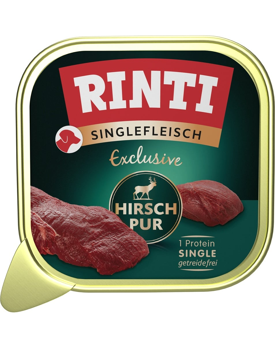 RINTI Singlefleisch Exclusive este o hrană umedă echilibrată, bogată în proteine și fără adaos de carbohidrați sau cereale, ce conține un singur tip de sursă de proteină. Este recomandată câinilor cu alergii alimentare sau intoleranțe, oferind o dietă bine tolerată și ușor digerabilă.
