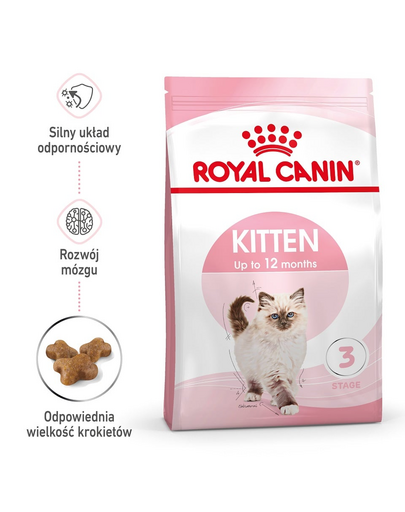 Hrana ROYAL CANIN® Kitten a fost special concepută pentru a acoperi nevoile nutriționale ale pisicuțelor aflate în a doua etapă de creștere. Formula este potrivită pentru pisicuțele cu vârste cuprinse între 4 și 12 luni, în timpul unei perioade de schimbări fizice și comportamentale semnificative.