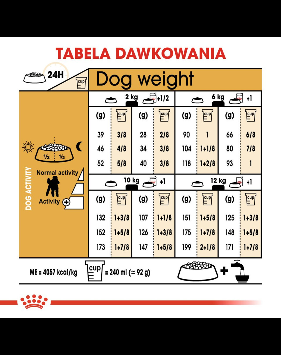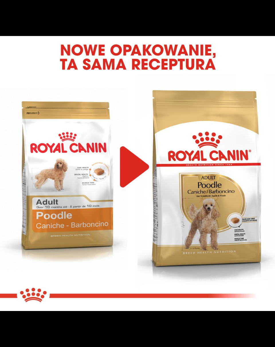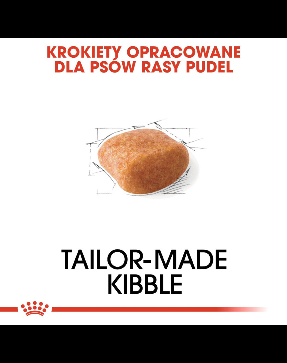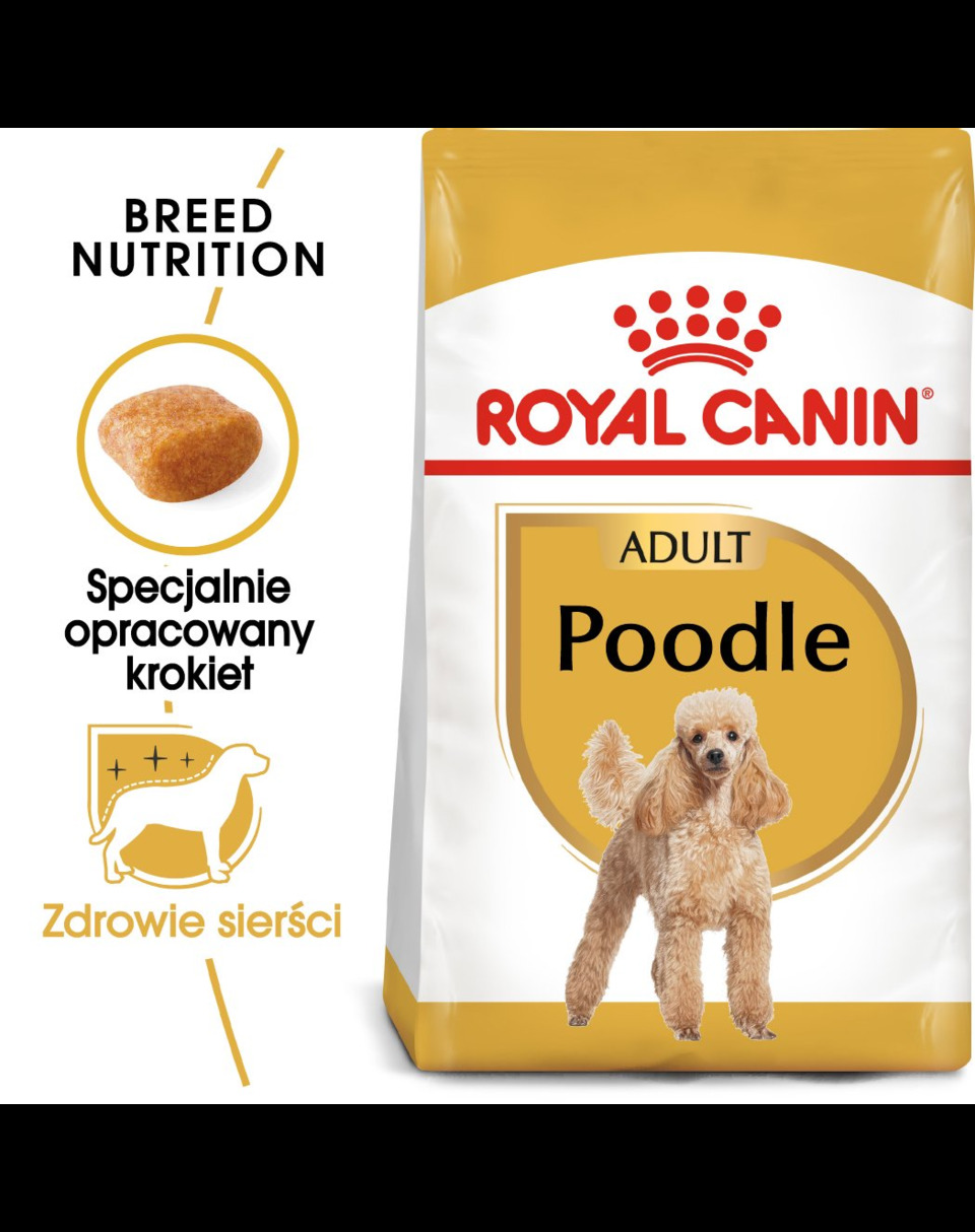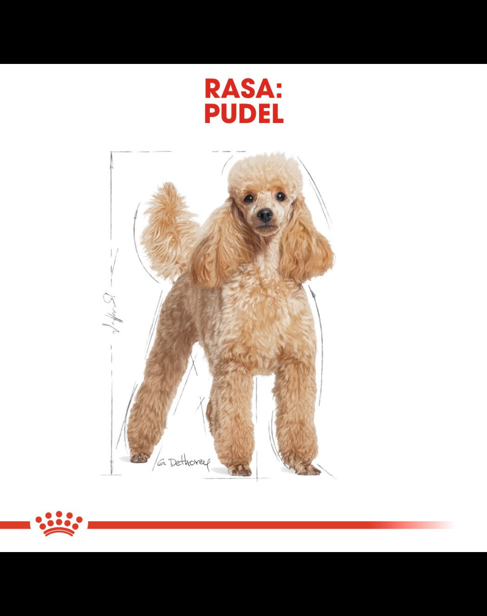 Hrană uscată completă special creată pentru câinii adulți și seniori din rasa Poodle (Caniche), cu vârsta de peste 10 luni.