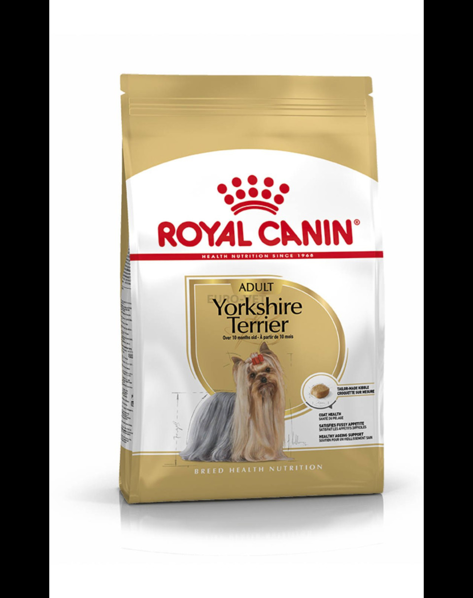 Hrană uscată completă special creată pentru câinii adulți și seniori din rasa Yorkshire Terrier, cu vârsta de peste 10 luni
