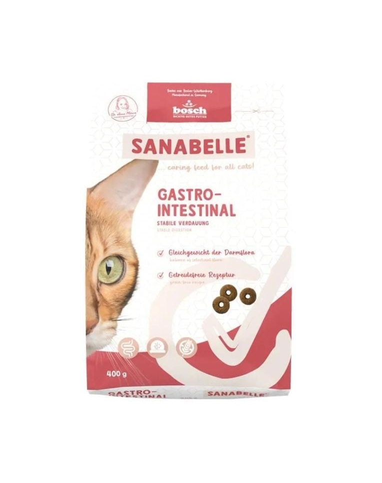 Sanabelle Gastrointestinal este o hrană specializată, fără cereale, pentru pisici cu un sistem digestiv sensibil. Datorită digestibilității extrem de ridicate și a valorii energetice crescute, ajută eficient la ușurarea tractului digestiv și susține sănătatea intestinelor.