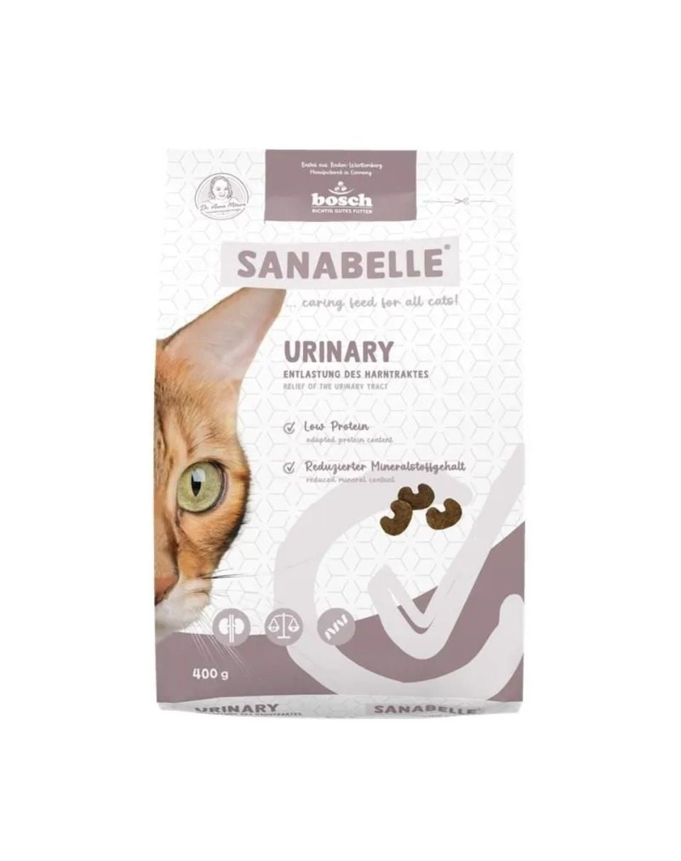 Sanabelle Urinary este o hrană uscată de clasă premium, dezvoltată pentru pisicile adulte cu tendințe de probleme ale sistemului urinar. Datorită conținutului redus de proteine și a cantității reduse de minerale – în special calciu și fosfor – hrana sprijină activ funcționarea corectă a rinichilor și a vezicii urinare, reducând riscul formării pietrelor urinare.