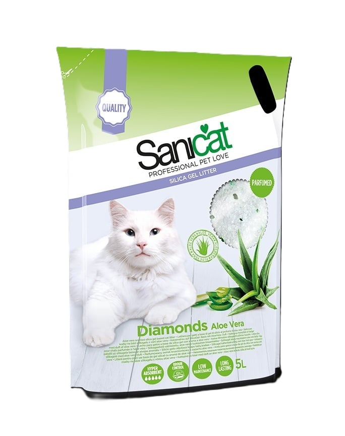 SANICAT Diamonds Aloe Vera este un așternut foarte absorbant pentru litieră, realizat din perle de gel de siliciu de înaltă calitate, concepute pentru a oferi confort și curățenie pe termen lung. Structura sa ușoară și poroasă absoarbe instant umezeala și captează mirosurile, menținând litiera uscată și proaspătă chiar și atunci când curățarea nu este făcută zilnic.