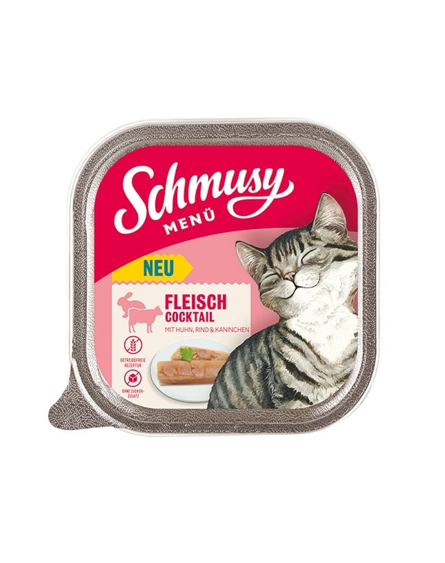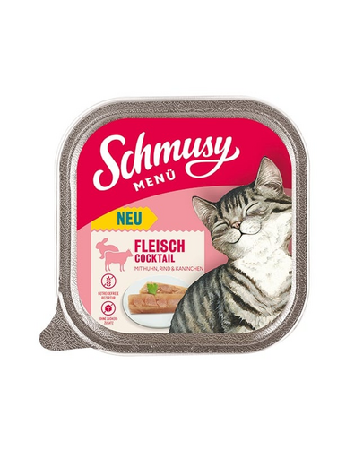 Schmusy Menü este masa zilnică ideală pentru micii tigri. Cu toate vitaminele și mineralele necesare, este hrana completă perfectă pentru fiecare zi. Acest fel de mâncare este preparat cu un cocktail de carne de pui, vită și iepure. Conține suficientă taurină și este fără cereale și fără zahăr adăugat - o masă deosebit de echilibrată.