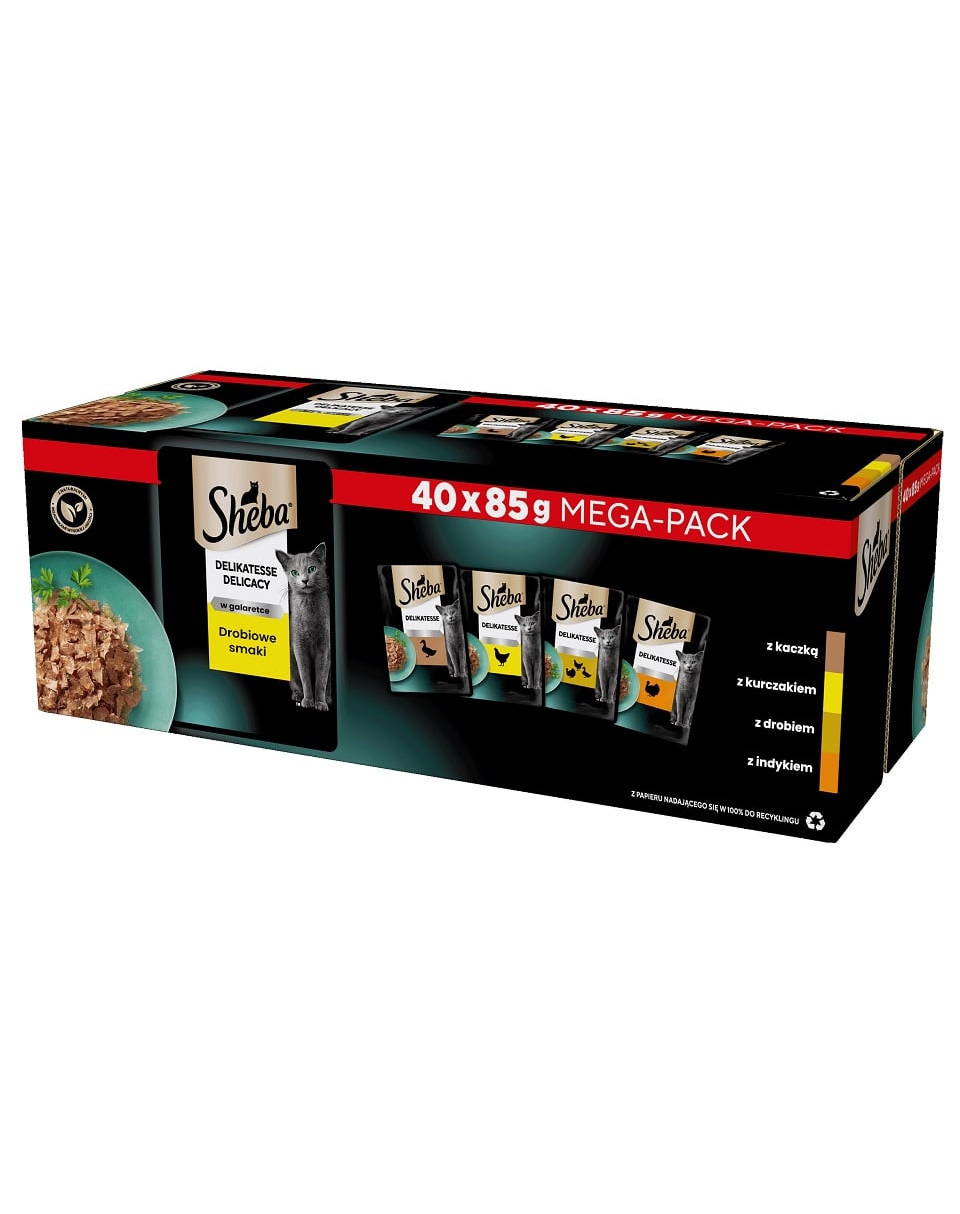 Sheba Delicacy Poultry Flavours este un mix de bucăți delicate, atent selecționate, într-un jeleu minunat. Propunerea de mese în 4 variante de arome, bucăți cu: rață, pui, pasăre, curcan, va încânta gusturile chiar și ale celor mai pretențioase pisici. Secretul rețetei de maestru a Sheba Delicacy Poultry Flavours constă în ingrediente naturale de înaltă calitate și vitamine și minerale. Fiecare plic conține nutrienți pentru a susține buna funcționare a pisicii dumneavoastră. Sheba Delicacy Poultry Flavours este o opțiune delicioasă de gătit zilnic, care va deveni rapid mâncarea preferată a pisicii dumneavoastră.