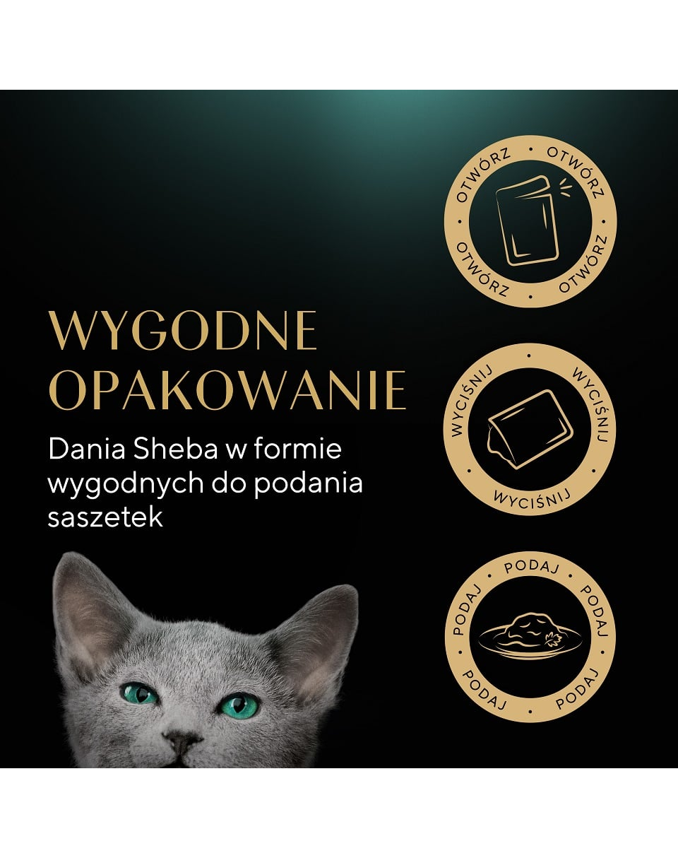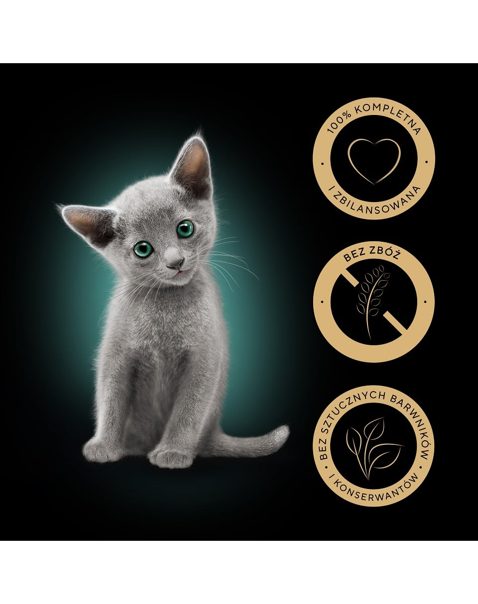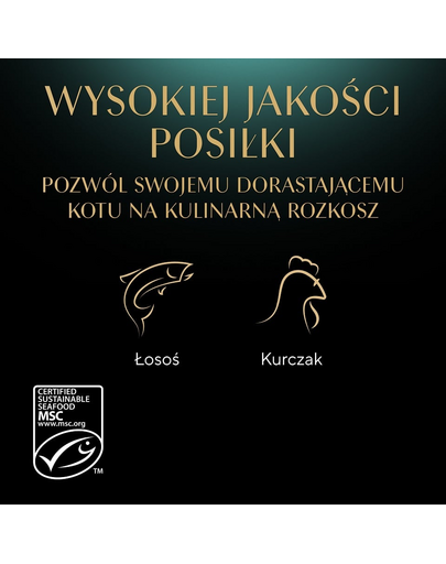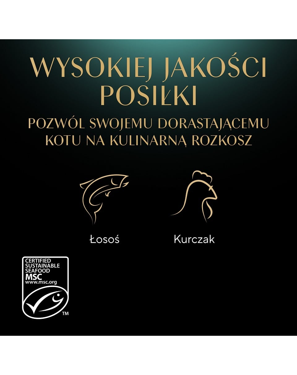 Sheba® Kitten Selection este o hrană umedă completă, special formulată pentru pisoi în creștere. Conține bucăți fragede în sos, cu somon și pui, adaptate perfect pentru gura mică a pisicilor tinere. Rețeta fără cereale este îmbogățită cu vitamine și minerale pentru a sprijini dezvoltarea sănătoasă, oasele puternice și sistemul imunitar.