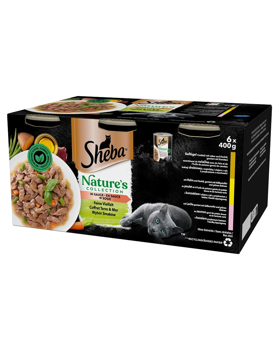 SHEBA Nature's Collection Selection of Flavours este plină de gusturi și arome captivante mâncăruri rafinate într-un sos catifelat. Propunerea de mâncare în 3 variante de arome: cocktail de pasăre cu ficat și ulei de pește garnisit cu morcovi, pui și ulei de pește garnisit cu igname și fasole verde și somon garnisit cu igname și fasole verde vor încânta palatele chiar și celor mai pretențioase pisici. Secretul rețetei Sheba Nature's Collection constă în ingrediente naturale de înaltă calitate atent selecționate, precum și în vitamine și minerale. Mâncărurile SHEBA Nature's Collection conțin ulei de pește, care este o sursă naturală de acizi grași Omega-3. Ignamele și fasolea verde incluse în formulă sunt o sursă naturală de fibre alimentare, vitaminele B și potasiu, iar morcovii sunt o sursă naturală de antioxidanți și fibre alimentare. Aceste mese delicioase nu conțin cereale, arome sau coloranți artificiali.