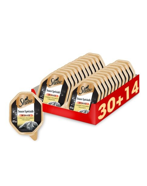 Experiența noastră de peste 30 de ani în răsfățarea pisicilor cu mâncăruri SHEBA® face din SHEBA® Sauce Speciale cu curcan, pui și legume un aliment complet și echilibrat pentru pisici. A fost preparat din ingrediente naturale de înaltă calitate, atent selectate, pe baza unei rețete speciale.