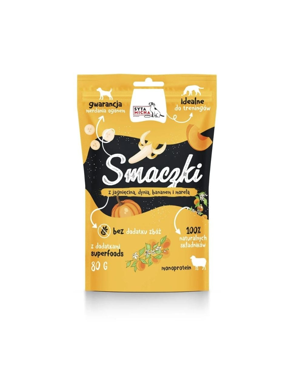 Gustări aromate, naturale, pentru dresaj, cu formă rotundă, realizate din carne de miel îmbogățită cu fructe și legume. Sunt ideale ca recompensă rapidă și sănătoasă pentru câini de toate vârstele, de la căței la seniori.