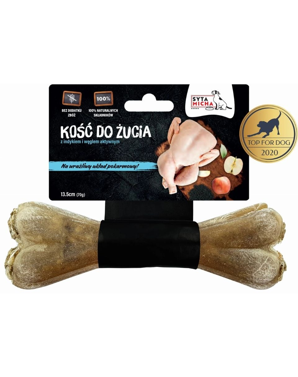Ingrediente: 93,75% piele de vită, 4% carne de curcan, 1% măr, 1% MOS+FOS, 0,25% cărbune vegetal.