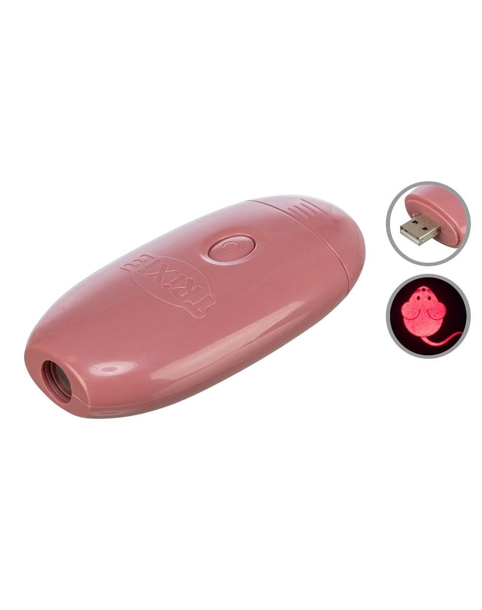 TRIXIE „Catch the Light” – indicator LED în formă de șoarece (8,5 cm, USB). Creează momente pline de distracție și instinct de vânătoare pentru pisica ta! Acest indicator compact proiectează un punct luminos în formă de șoarece care va captiva atenția oricărui pisoi. Îl poți încărca rapid și comod prin USB, iar joaca începe imediat — o activitate sigură, amuzantă și fără riscuri pentru ochi.