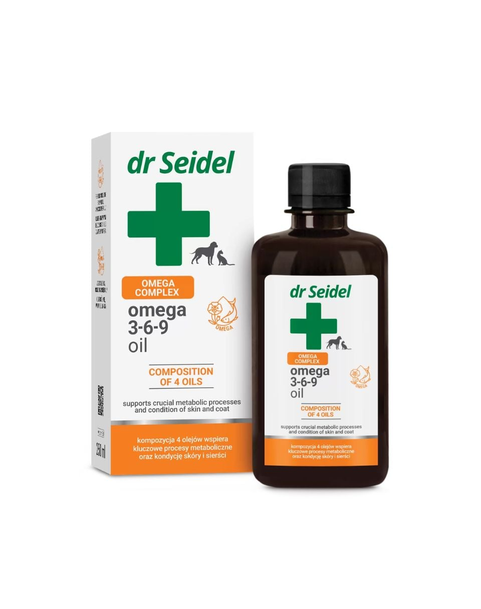 Uleiul Omega 3-6-9 pentru câini și pisici DR SEIDEL este un supliment complet destinat susținerii sănătății generale, imunității și stării pielii și blănii. Este potrivit pentru animale de toate vârstele, inclusiv în perioadele de creștere, gestație sau recuperare.