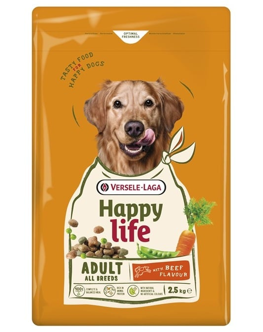 Versele-Laga Happy Life Adult with Beef Flavour este o hrană completă și echilibrată, cu aromă delicioasă de vită, destinată câinilor adulți activi. Formula furnizează proporții optime de proteine, grăsimi, carbohidrați, vitamine și minerale, contribuind la sănătatea, energia și buna condiție fizică a câinelui tău.