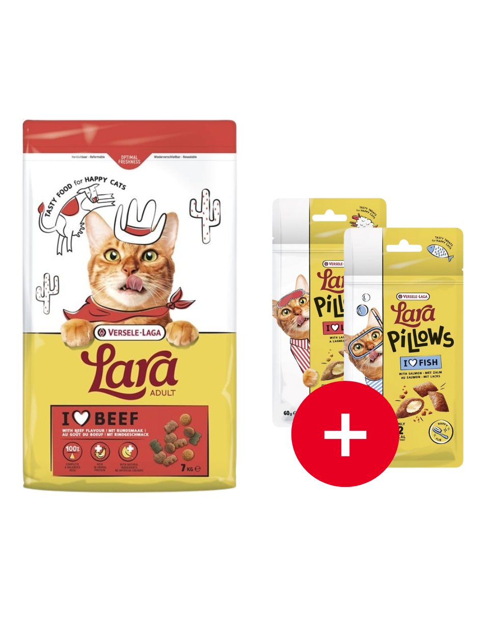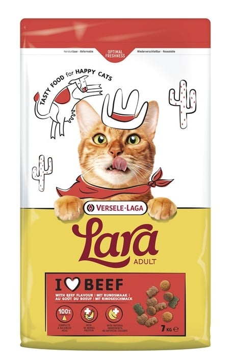 Versele-Laga Lara Adult with Beef Flavour este o hrană uscată completă, cu aromă delicioasă de vită, potrivită pentru pisicile adulte, atât pentru cele care trăiesc în interior, cât și pentru cele care au acces în exterior. Formula echilibrată oferă toate substanțele nutritive esențiale, vitaminele și mineralele necesare pentru menținerea sănătății, a energiei și a unei stări generale bune.
