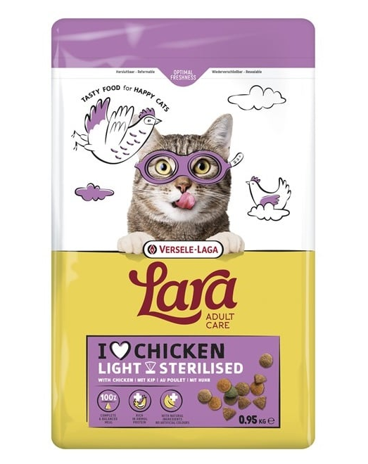 Versele-Laga Lara Adult Light Sterilized este o hrană uscată gustoasă, creată special pentru nevoile pisicilor sterilizate și ale celor cu un nivel redus de activitate. Rețeta echilibrată contribuie la menținerea unei greutăți sănătoase, oferind în același timp energie și vitamine esențiale pentru activitatea zilnică.