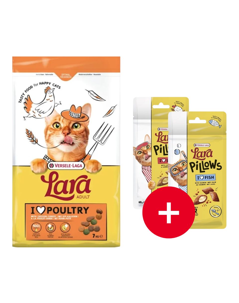 VERSELE-LAGA Lara Adult Turkey & Chicken este o hrană uscată premium, creată pentru a acoperi nevoile nutriționale zilnice ale pisicilor adulte. Conține un amestec echilibrat de proteine, grăsimi, vitamine și minerale, oferind suport optim pentru sănătatea generală, digestie și sistemul imunitar.