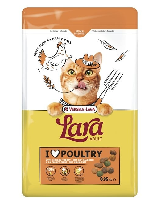 Versele-Laga Lara Adult Turkey & Chicken este o hrană uscată completă și echilibrată, creată pentru pisicile adulte care preferă gustul delicat al cărnii de pasăre. Combinația de pui și curcan furnizează proteine animale de calitate, esențiale pentru menținerea masei musculare și pentru energia necesară activităților zilnice.