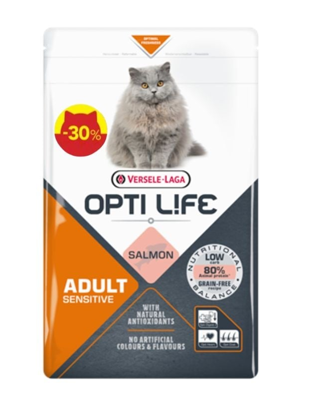 Versele-Laga Opti Life Cat Adult Sensitive Somon – hrană premium fără cereale pentru pisici sensibile