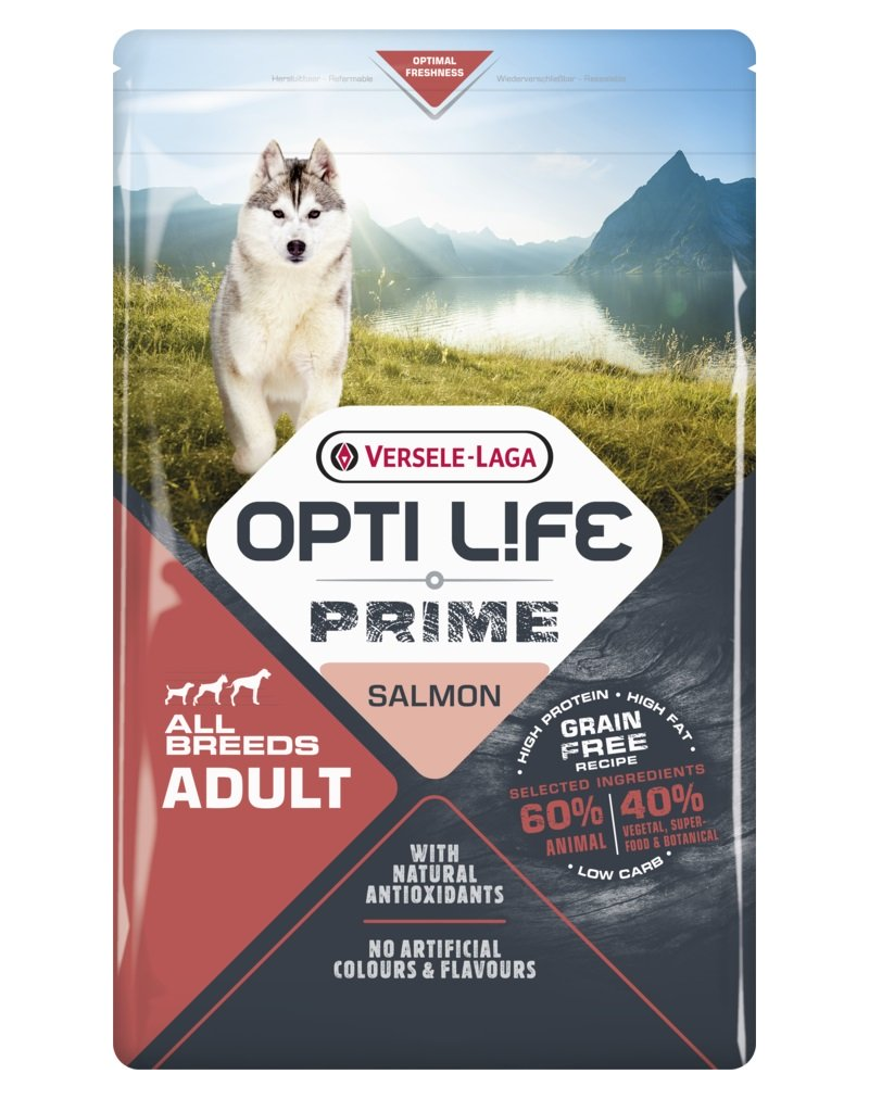Cu Opti Life Prime Adult Somon, îi oferiți câinelui dumneavoastră o masă completă și gustoasă, de calitate superioară, plină de nutrienți valoroși. Formula noastră fără cereale are un conținut ridicat de proteine și grăsimi și un conținut scăzut de carbohidrați. Este compoziția perfectă, realizată cu ingrediente de cea mai bună calitate, gustoase și naturale, pentru a oferi energie pentru o zi plină de aventură.