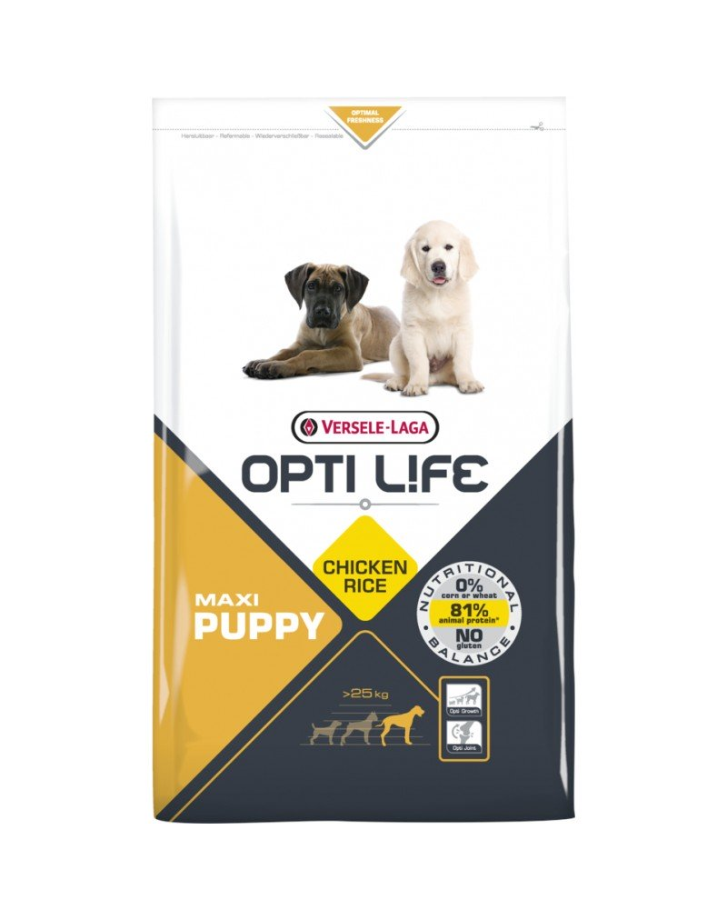 Mâncare uscată perfect echilibrată care acoperă nevoile specifice ale puiilor de rase mari și uriașe. Sursa de proteine animale este puiul. Mâncarea se bazează pe orez, iar adăugarea de ulei de somon asigură acizii grași esențiali n-3 și n-6, care au un efect pozitiv asupra imunității, dezvoltării creierului și aspectului sănătos al pielii și al stratului. Conținutul ridicat de fibre stimulează sistemul digestiv. Mâncarea nu conține gluten, nu conține grâu sau porumb, prevenind astfel apariția alergiilor și intoleranțelor alimentare. Îmbogățind-o cu glucozamină, susține dezvoltarea articulațiilor în faza de creștere.