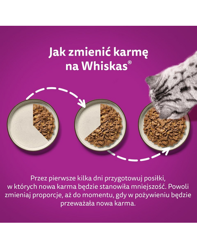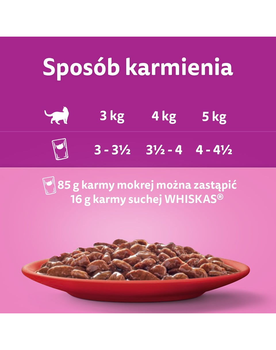 85 g de hrană umedă pot fi înlocuite cu 16 g de hrană uscată WHISKAS.
