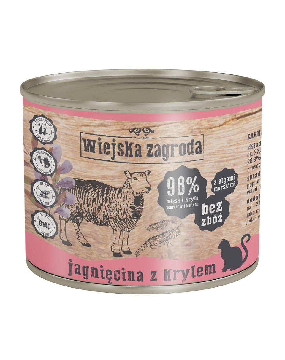 Hrană completă, fără cereale, cu miel și krill pentru pisici adulte. Mâncarea este o combinație de două cărnuri într-un bulion aromat. Până la 66% carne de miel împreună cu măruntaie și adaos de krill reprezintă cea mai bună sursă de proteine pentru pisici.