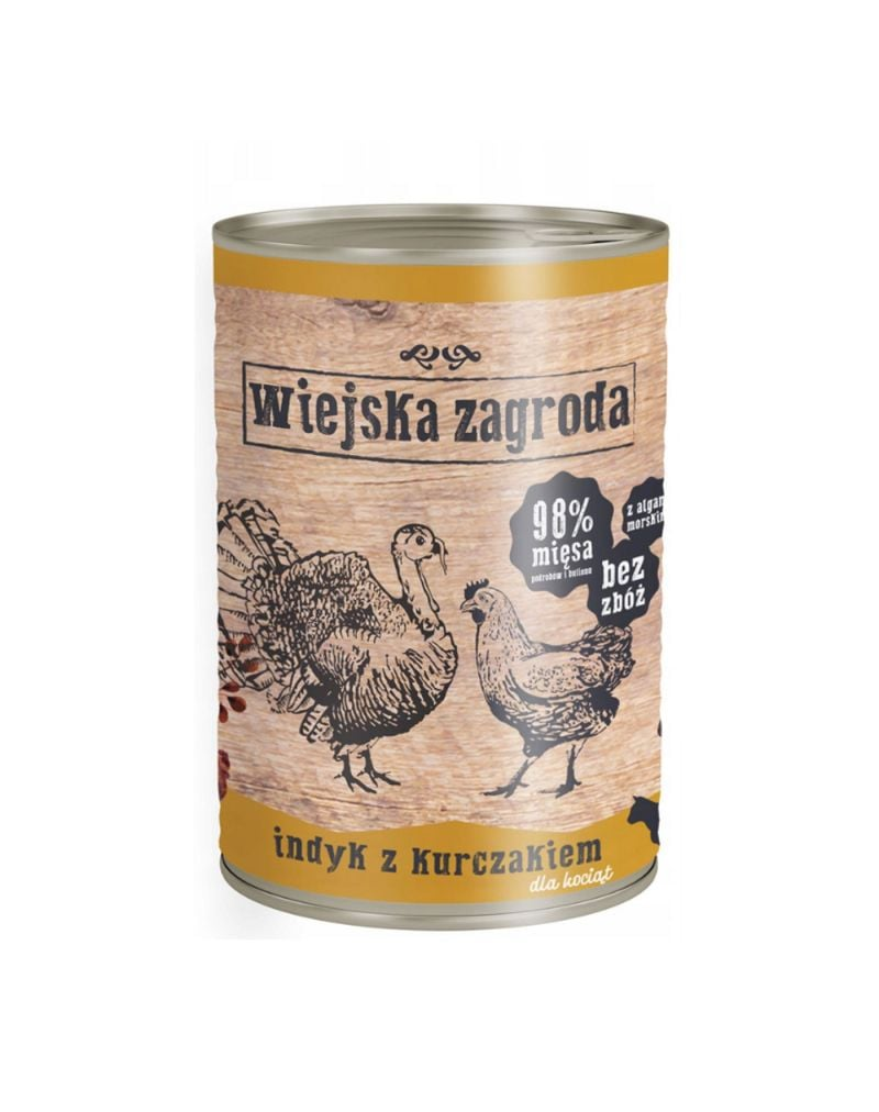 Curcan 35% (din care aprox. 80% carne de mușchi și inimă, aprox. 20% ficat), pui 35% (100% carne de mușchi), bulion de curcan și pui 28,4%, minerale 1%, ulei de somon 0,5%, spirulină 0,1%.