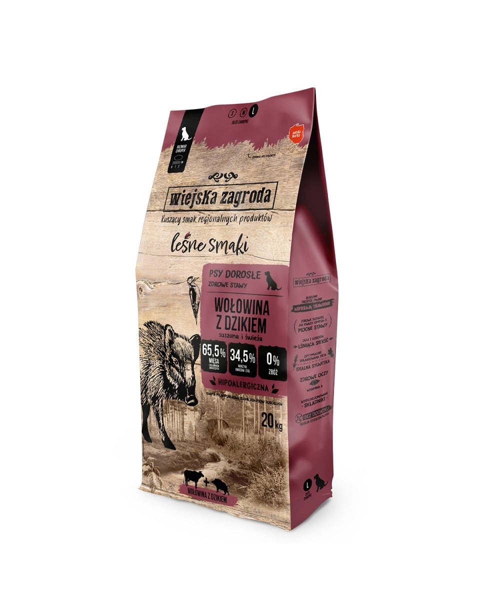 Hrana din carne de vită cu mistreț susține o funcție specială: articulații sănătoase, datorită cantității crescute de condroitină și glucozamină! Crochetele sale mari vor fi o alegere ideală mai ales pentru câinii de talie mare.