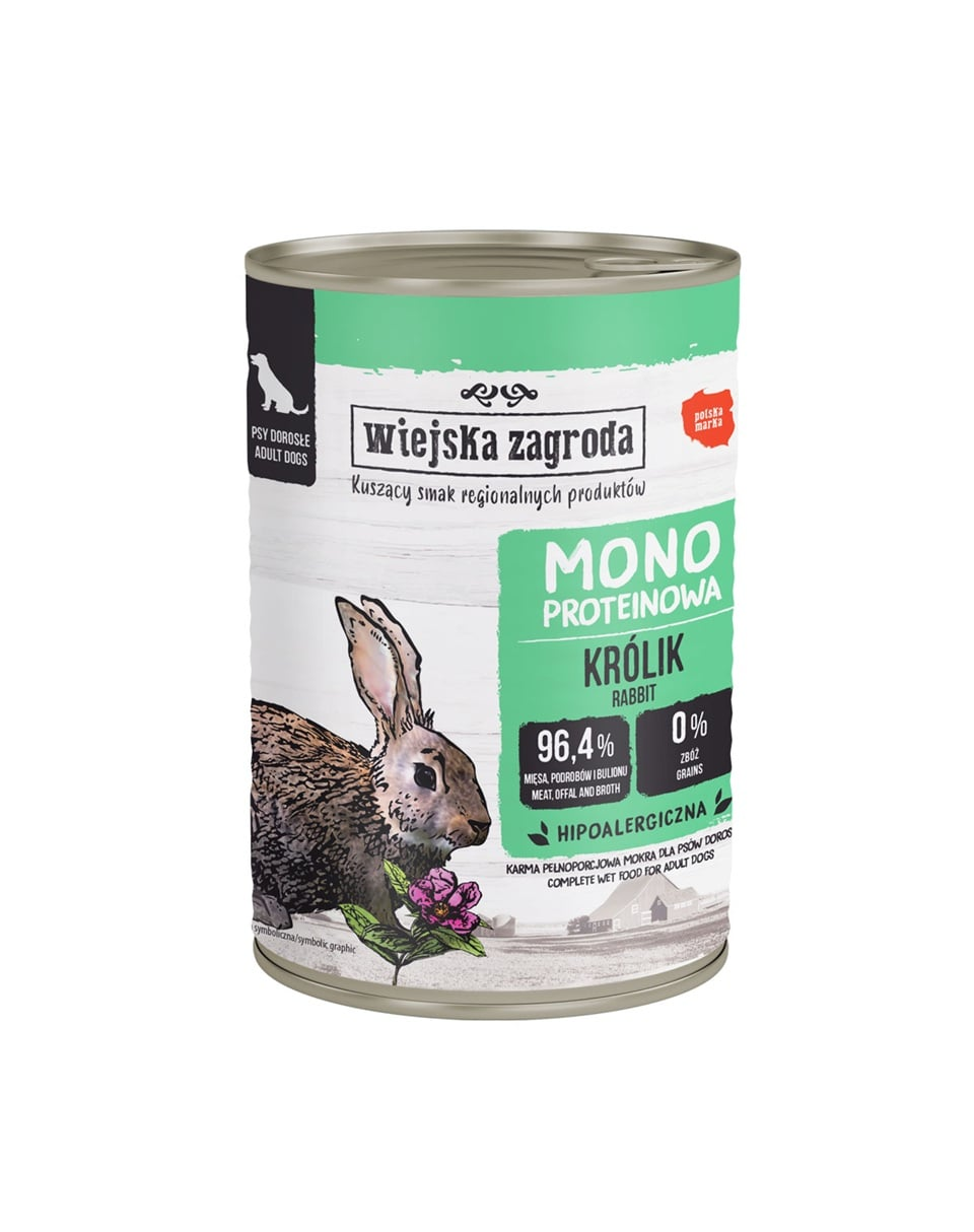 Descoperiți hrana umedă monoproteică pentru câini de la Wiejska Zagroda. Fiecare conservă conține un singur tip de carne, care se află pe primul loc în compoziție. În plus, rețetele sunt îmbogățite cu adaosuri valoroase sub formă de fructe sau legume și plante, care contribuie la menținerea sănătății și a unui organism puternic al câinelui.
