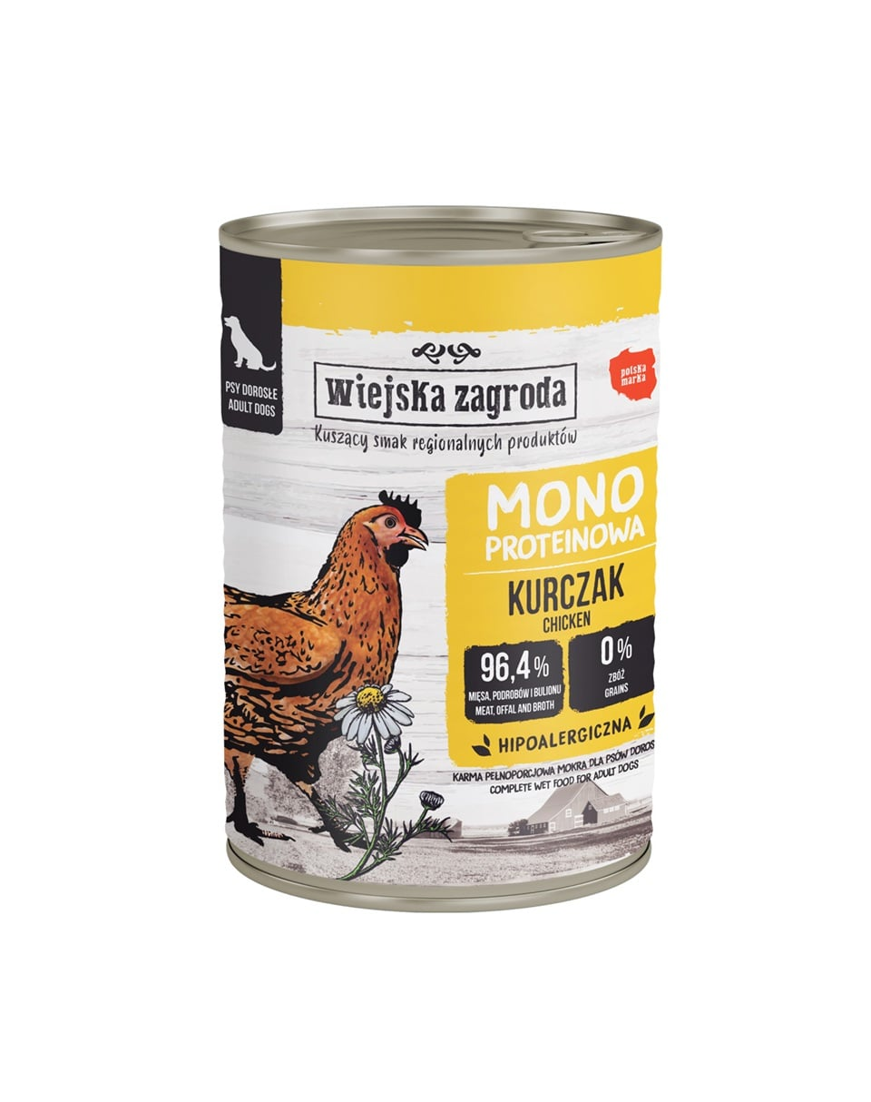 Hrană umedă completă pentru câini adulți Wiejska Zagroda Monoproteică Pui 400 g