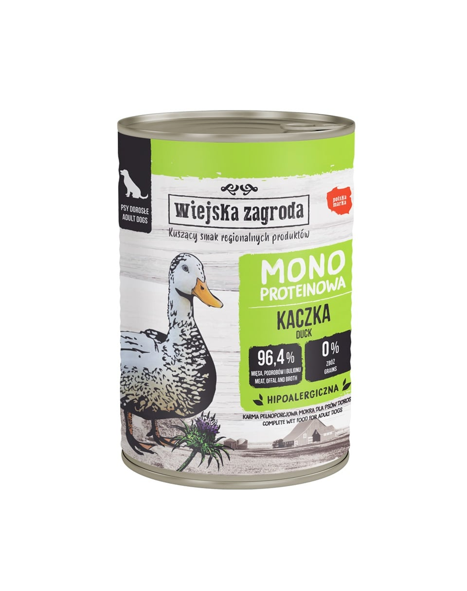 Descoperiți hrana umedă monoproteică Wiejska Zagroda pentru câini. Fiecare conservă conține un singur tip de carne, care este ingredientul principal al compoziției! Include, de asemenea, super ingrediente speciale sub formă de fructe, legume și plante, care ajută la menținerea sănătății și a unei condiții fizice puternice a câinelui tău.