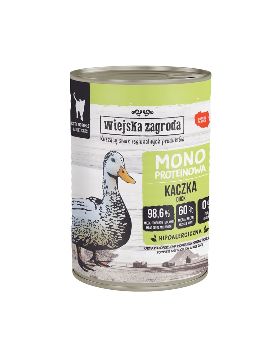 Descoperă hrana umedă monoproteică Wiejska Zagroda pentru pisici. Fiecare conservă conține un singur tip de carne, aflat pe primul loc în lista ingredientelor!