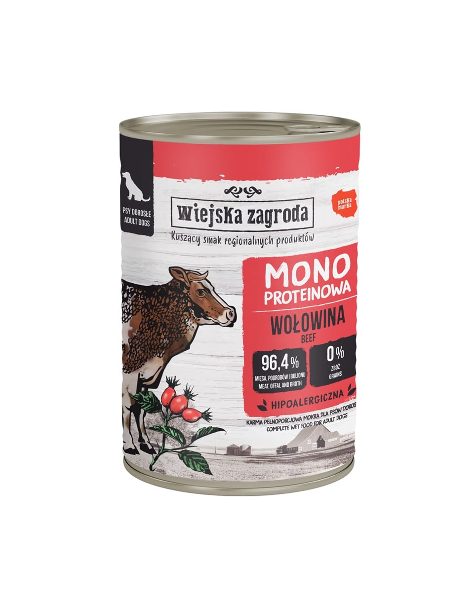Descoperiți hrana umedă monoproteică Wiejska Zagroda pentru câini. Fiecare conservă conține un singur tip de carne, care este ingredientul principal al compoziției! Include, de asemenea, super ingrediente speciale sub formă de fructe, legume și plante, care ajută la menținerea sănătății și a unei condiții fizice puternice a câinelui tău.