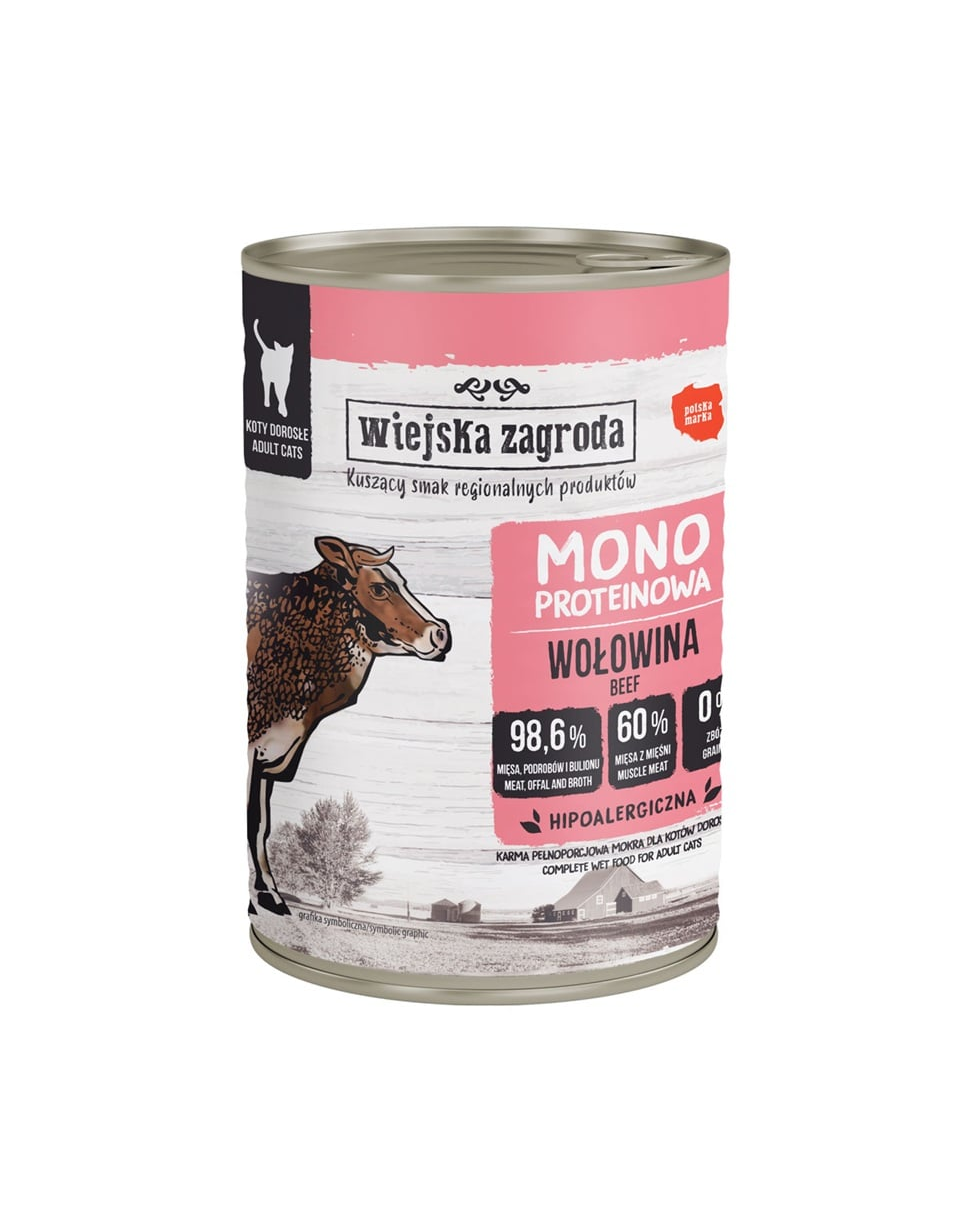 Descoperiți gama de hrane umede monoproteice Wiejska Zagroda pentru pisici. Fiecare conservă conține un singur tip de carne, care se află pe primul loc în lista ingredientelor! Aceste hrănuri reprezintă o alegere excelentă pentru pisicile pretențioase. Alternând diferite surse de proteine, putem observa care tip de carne este preferat de prietenul nostru patruped. Sunt ideale pentru pisicile sensibile sau cele care suferă de alergii alimentare – oferind o hrană bazată pe un singur tip de proteină, putem urmări reacțiile organismului și starea pielii. Astfel, este mai ușor să excludem ingredientele care pot cauza reacții nedorite. Gama variată de tipuri de carne asigură că fiecare pisică își găsește în meniul nostru ceva pe gustul ei!