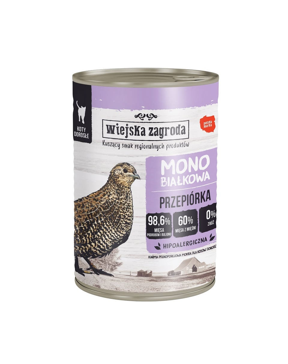 Fiecare cutie de hrană mono-proteică WIEJSKA ZAGRODA conține un singur tip de carne, care întregește fiecare compoziție.