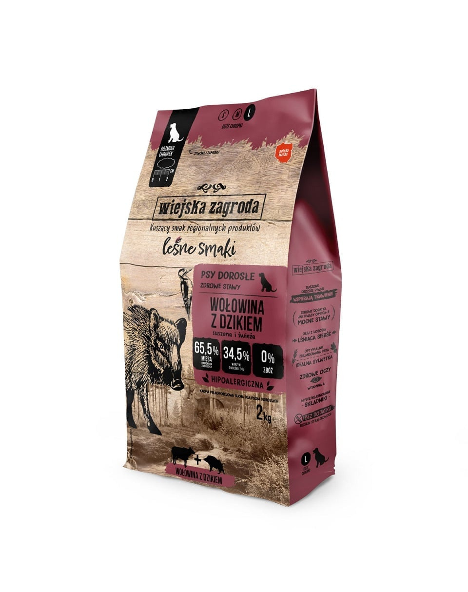 Hrana din carne de vită cu mistreț susține o funcție specială: articulații sănătoase, datorită cantității crescute de condroitină și glucozamină! Crochetele sale mari vor fi o alegere ideală mai ales pentru câinii de talie mare.