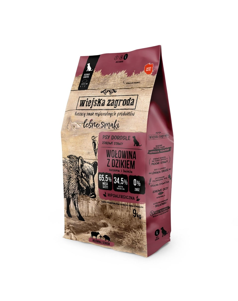 WIEJSKA ZAGRODA Hrana uscata pentru caini de talie mare, cu vita si mistret 9kg