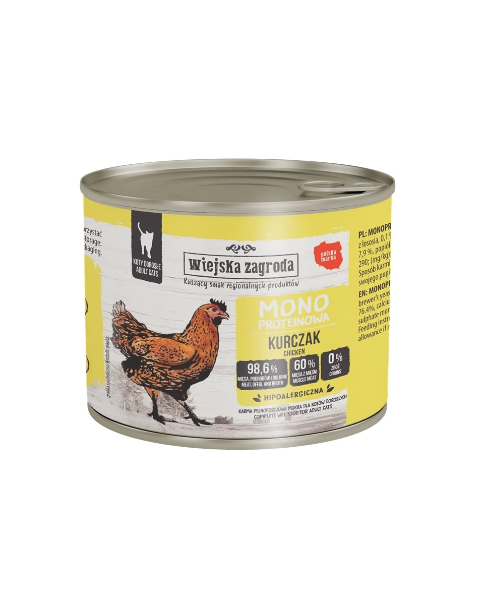 Descoperă hrana umedă monoproteică Wiejska Zagroda pentru pisici. Fiecare conservă conține un singur tip de carne, care se regăsește pe primul loc în listă!