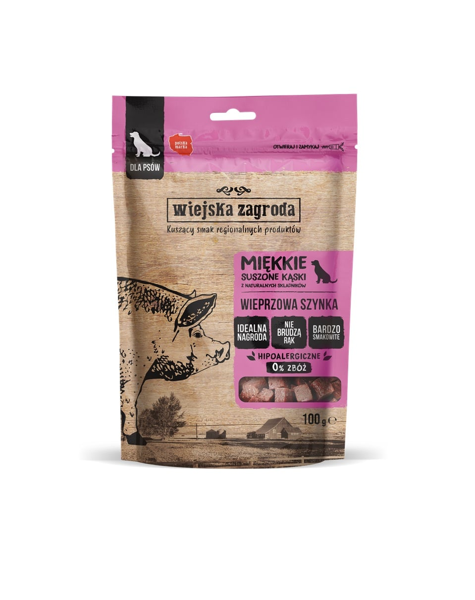 Descoperiți delicatesele pentru câini Wiejska Zagroda sub formă de cuburi moi, uscate! Aceste gustări-delicatese se remarcă printr-o compoziție atent elaborată, o palatabilitate ridicată și o modalitate ușoară de servire sub formă de cuburi gata preparate, moi și ușor de împărțit. Convingeți-vă cât de mult le va iubi animalul dumneavoastră de companie!