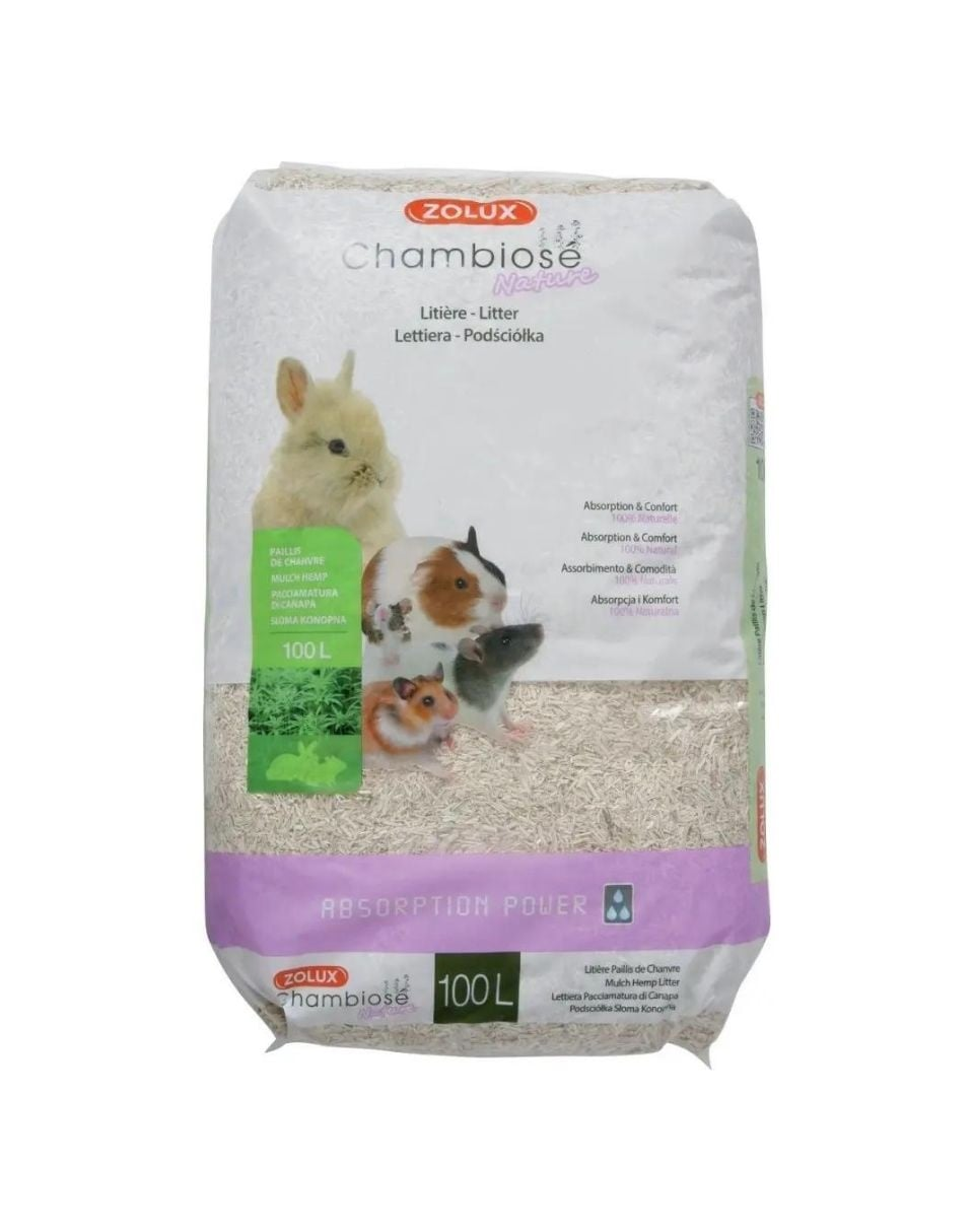 Așternutul pentru rozătoare Chambiose Nature este natural, pe bază de plante și biodegradabil.