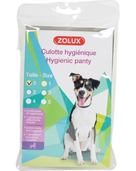 ZOLUX Chiloți igienici pentru cățele, mărimea 4, sunt un accesoriu practic destinat utilizării în perioada de călduri. Aceștia ajută la prevenirea murdăririi podelelor, mobilierului și altor suprafețe din locuință, oferind în același timp confort și protecție câinelui.