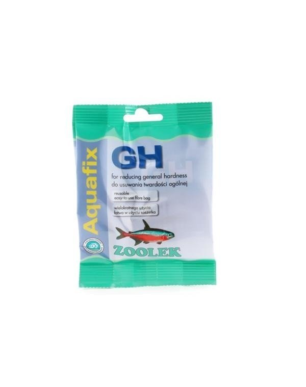 ZOOLEK Aquafix GH. Se utilizează pentru a reduce duritatea totală. În timpul dedurizării, duritatea carbonatică rămâne neschimbată, în timp ce carbonații de calciu și magneziu sunt transformați în bicarbonat de sodiu - cu o ușoară creștere a pH-ului. Acești saci pot fi regenerați în mod repetat într-o soluție de sare.